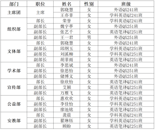 根据《外国语学院第二十届研究生会换届通知》要求,结合专业特色、工作实际,经学生本人申请,学院公开选拔,结合学生个人平时表现、综合素质,参考辅导员、学工办会议审议,拟确定外国语学院第二十届研究生会成员名单,现将结果公示如下,公示期3天(2025年10月14日-10月16日)。