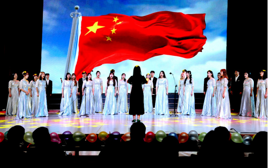 第三篇章“丹心共在,山河无恙,大义长争日月光”,传递着温暖与感动。相声 《“疫”点小事》,以新奇的形式讲述了疫情暴发以来离汉回家、居家隔离、初次出门以及返校的经历,既有笑点又能引起不少同学的共鸣;由辅导员杜岳青老师和5名学生共同演唱的歌曲《When You Believe》,以高低女声相互配合,表现出强劲的感染力和号召力,将晚会气氛推向了高潮;最后,由地平线合唱团带来的合唱曲目《祖国不会忘记》,磅礴大气而又不失朴实真挚,表达对疫情期间无私奉献的抗疫英雄们的崇敬之情。