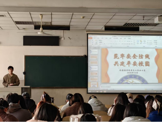 (通讯员 吴优)严部署筑牢安全防线深走访传递暖心关怀。12月22日至25日,外国语学院围绕元旦假期安全与学期末重点工作,组织开展了一系列专题教育和走访活动,旨在提升学生安全意识,加强管理与关怀,确保校园稳定有序。