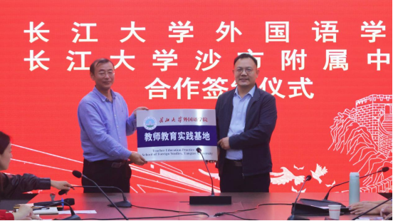 签约完成后,双方举行了“长江大学外国语学院教师教育实践基地”授牌仪式,标志着两校合作进入实质推进阶段。