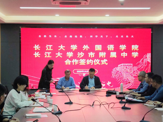 (通讯员 王娟)10月14日上午,长江大学外国语学院与长江大学沙市附属中学合作协议签约仪式在沙市附属中学二楼会议室顺利举行。双方代表齐聚一堂,共同见证校地合作迈向更深层次、更宽领域的重要时刻。