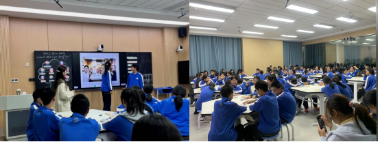 活动伊始,同学们集中走进长大附中的智慧教室,全程聆听该校英语教师张欣欣主讲的听说课。课堂上,张老师以新课标为导向,结合学生认知特点设计互动环节,通过AI赋能、情境模拟、小组合作、多媒体资源辅助等方式,充分调动学生的学习积极性。从词汇导入到句型操练,从听力训练到口语表达,整堂课逻辑清晰、节奏紧凑,为在场的外院学子呈现了一堂高效生动的优质示范课。